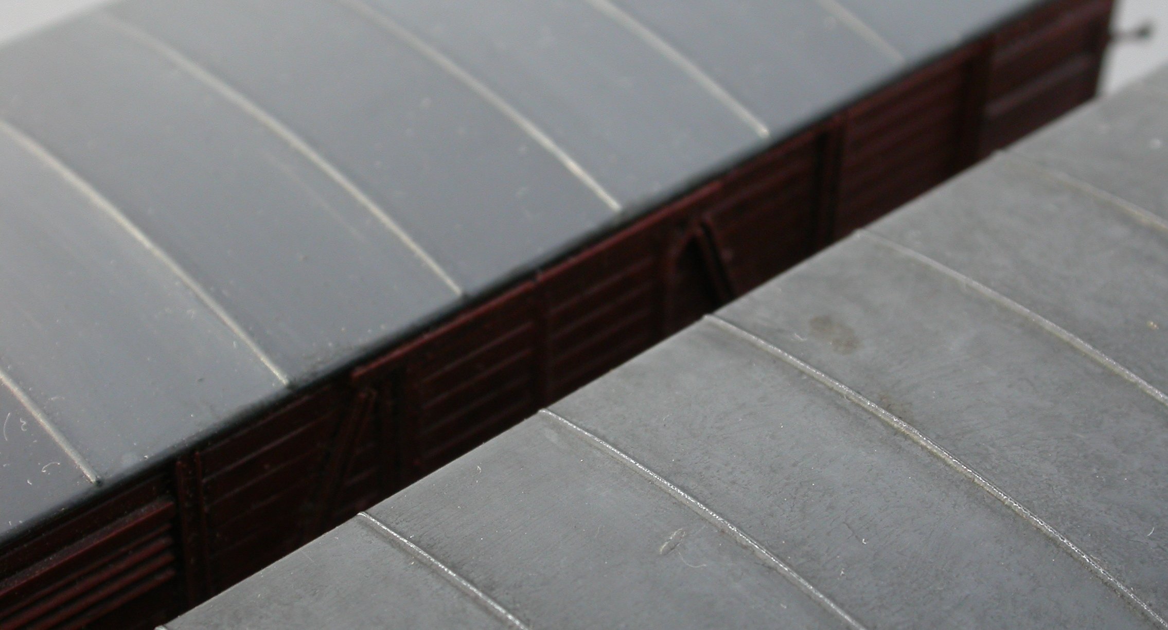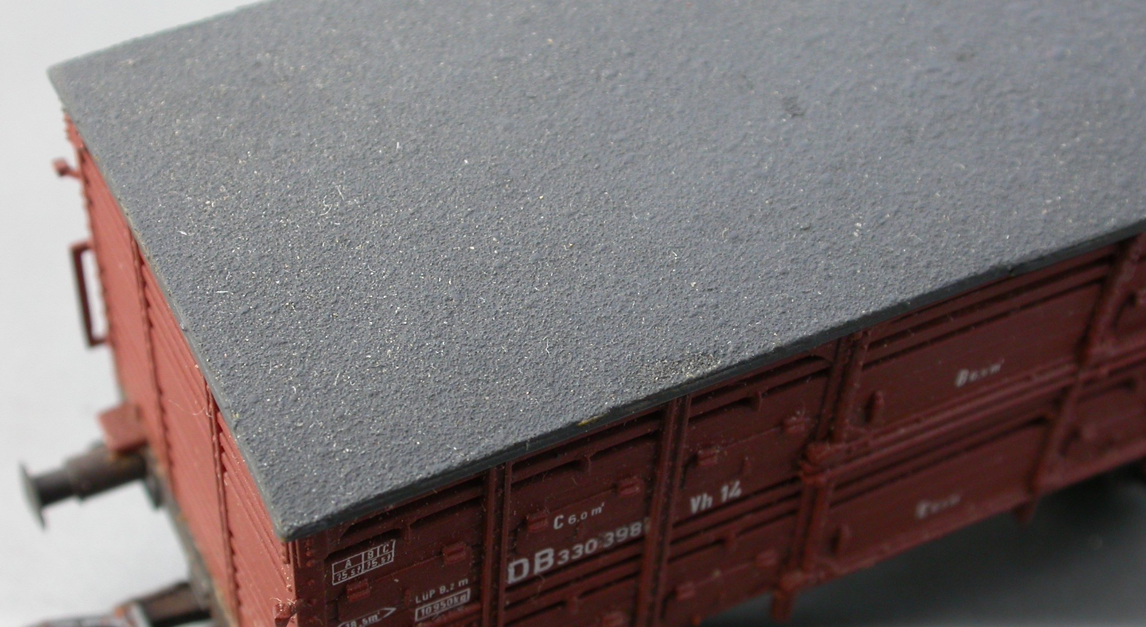 Hier gilt es zu unterscheiden, und zwar nach dem Vorbildmaterial des Dachs. Davon gibt es bei Güterwagen im Wesentlichen drei: Gewebedachdecke, Stahldach und Aluminiumdach.