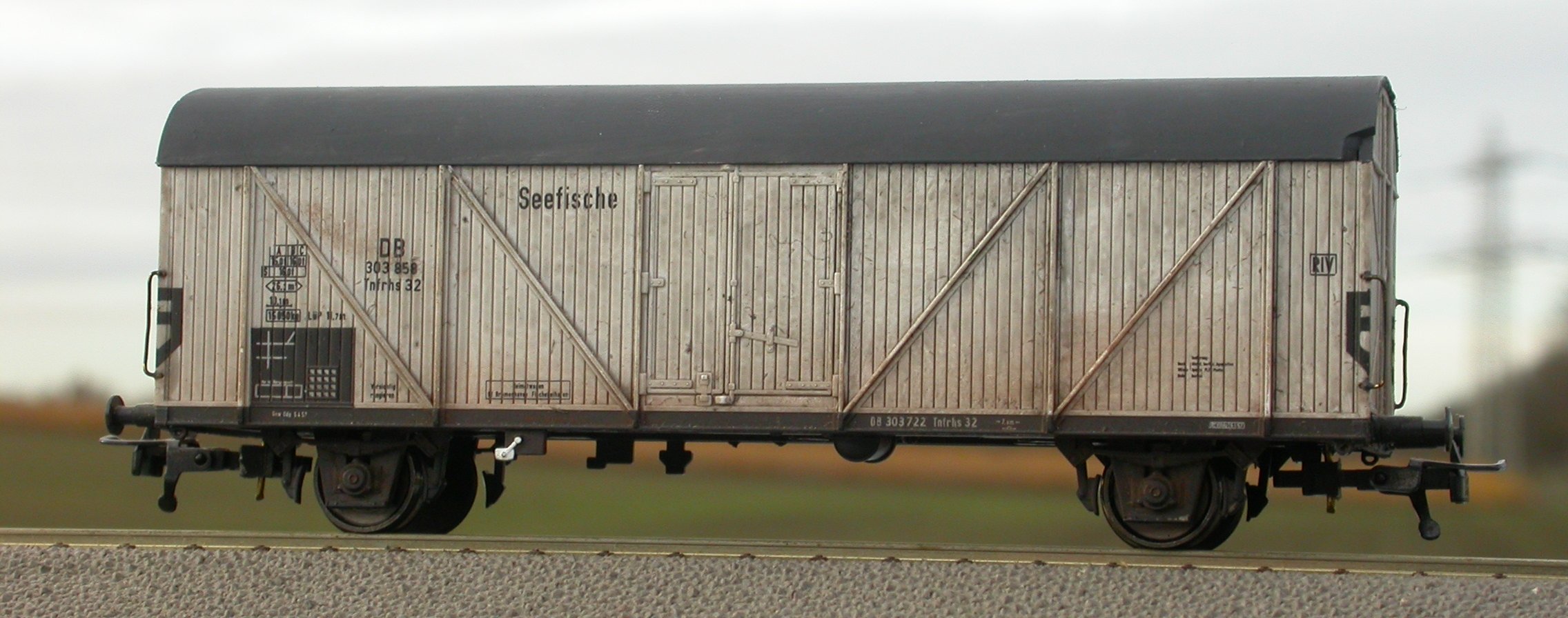 Seefischkühlwagen Tnfrhs 32 von Klein Modellbahn, dezent verdreckt