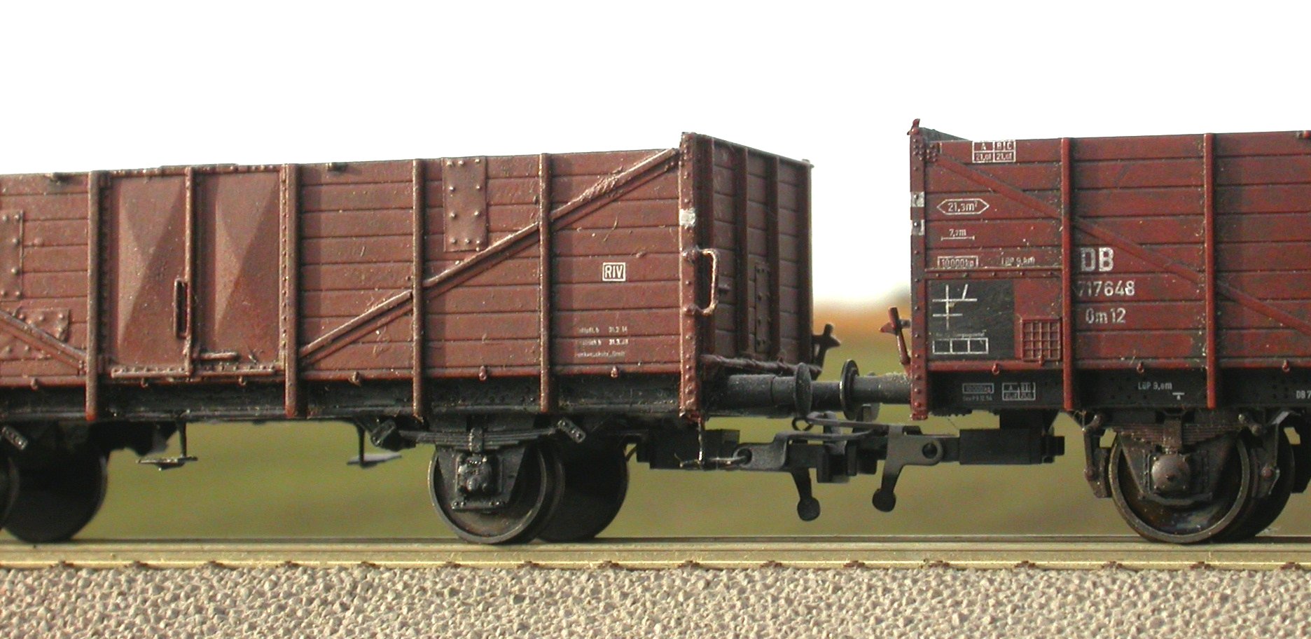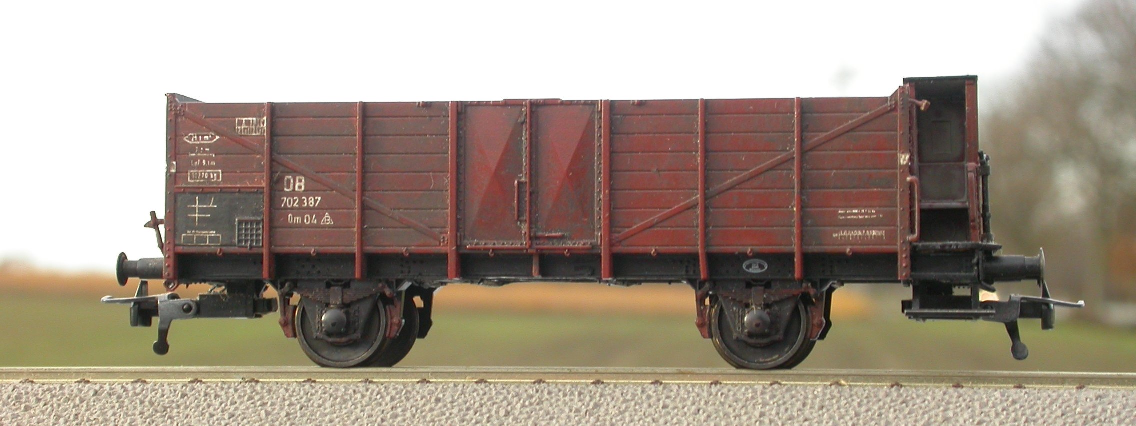 Das ist ein eher schwieriges Kapitel. Beim Vorbild sind Verformungen gang und gäbe, besonders bei O-Wagen: Holzwandwagen bauchen sich seitlich aus, Blechwandwagen sammeln Beulen ohne Ende. Beides ist im Modell sehr sehr schwierig, weswegen es nur wenige wagen.