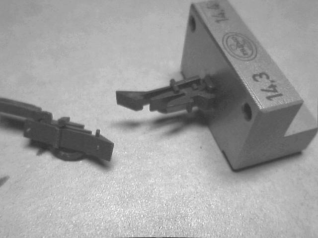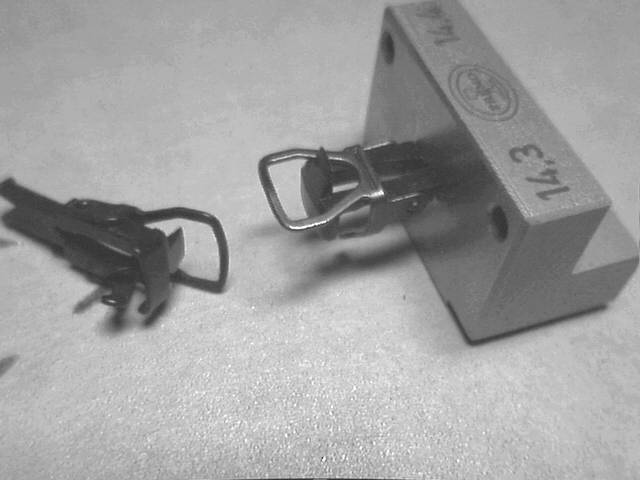 Erst neuerdings wird die Originalkupplung auch für Betriebsmodellbahner interessanter. Angefangen hat das glaub ich bei den "fiNescale"-Leuten, also der Clique im Fremo, die in N richtige Modelleisenbahnen baut ;-) Der Hintergedanke ist wie alle großen Ideen simpel: man ätzt die Kupplung aus Stahlblech und kuppelt mit Magneten statt Pinzetten.
