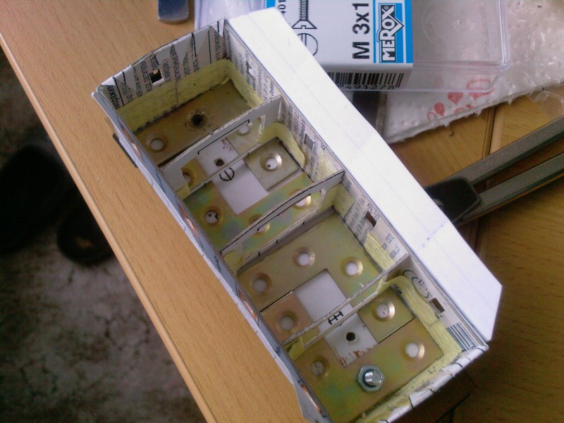 man beachte ein ausgeschnittenes Fenster in beiden Teilen, sowie den Spalt zum Einschieben der Bodenplatte