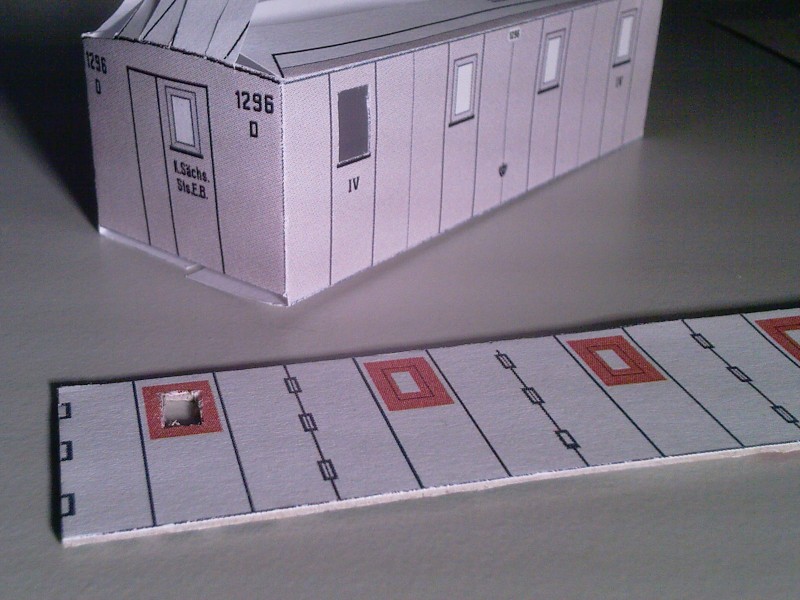 Die inneren Querwände sind nicht vorbildgerecht, ich habe sie nur eingefügt um das Dach zu stabilisieren.