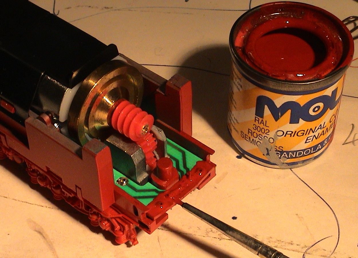 - Den sichtbaren Teil der Platinen an der Tendervorderwand und im Lokrahmen rot
