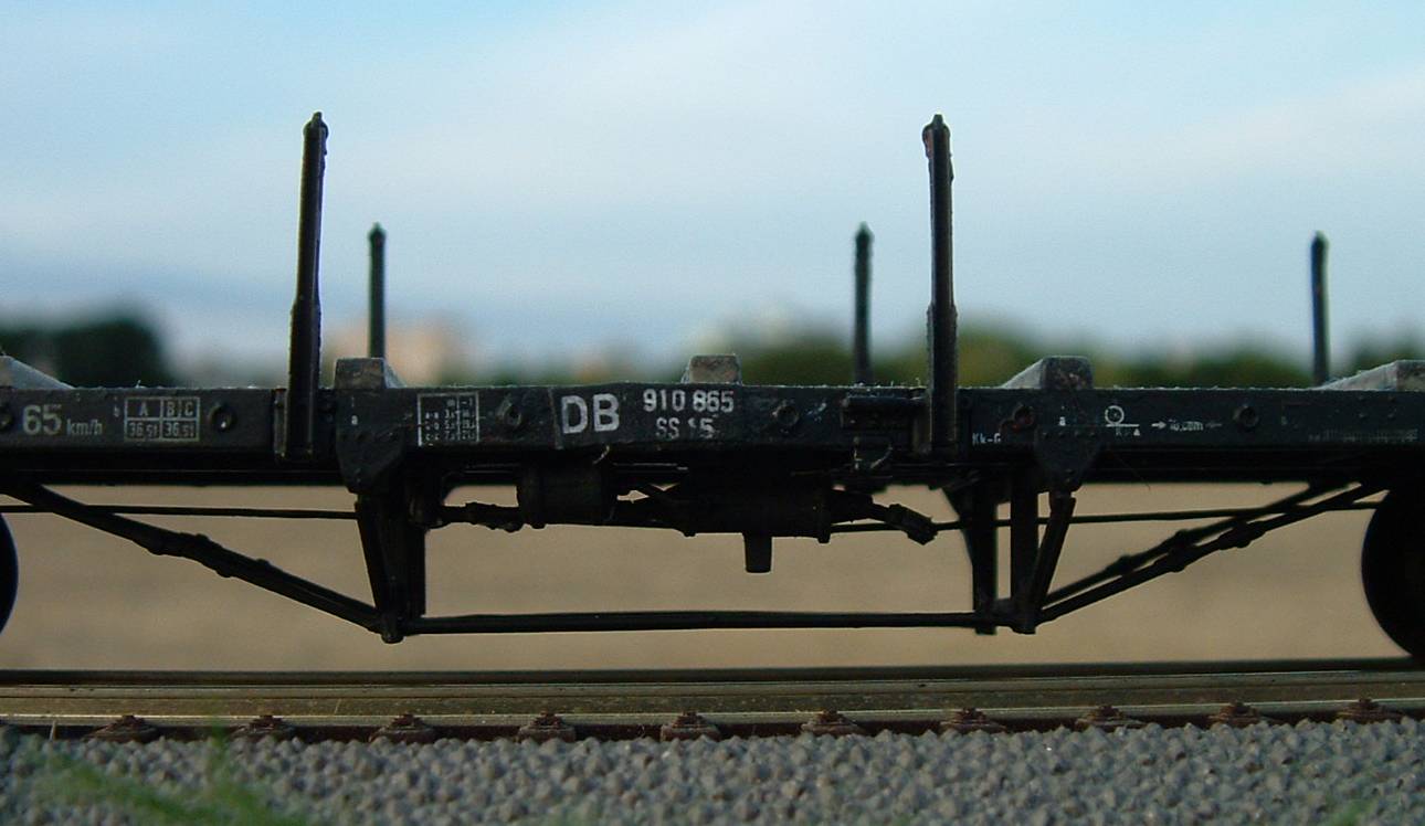 Es bleiben über: ein SSk 07 ohne Drehgestelle und ein Paar Drehgestelle nach Zeichnung Ci 149. Nein, meines Wissens gab es diese Kombination nicht, aber Kopf hoch: für den SSk 08 brauchen wir genau diese Drehgestelle, aber auch die Rungen und das Bremserhaus des SSk 07 (den man deswegen am besten in der Reichsbahn-Version kauft). Und den Rest, nämlich Rahmen und Sprengwerk des Fleischmann-Wagens, kann man ja immer noch zu fotogenem Schrott verarbeiten ...