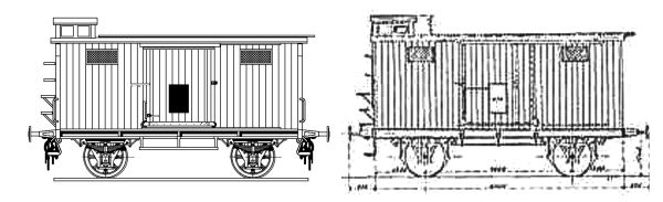 Irgendwo in den Tiefen des Internets fand ich eine Skizze eines gedeckten badischen Güterwagens (Bild 01) Die Skizze ist zwar extrem schlecht, aber ich möchte den Wagen nachbauen. Zudem ist der Wagen in gebremster und ungebremster Ausführung dargestellt, die Unterschiede beschränken sich auf ein paar Kleinigkeiten, es liegt also nahe, gleich zwei dieser Wagen im Modell nachzubauen. Der Wagen hat schmale Fachwerkachshalter, senkrechte Bretterwände und, wenn man vom Bremserhaus absieht, keine komplizierten Formen. Ähnliche Wagen gibt’s als Modell, man könnte also kitbashen.