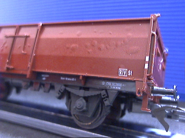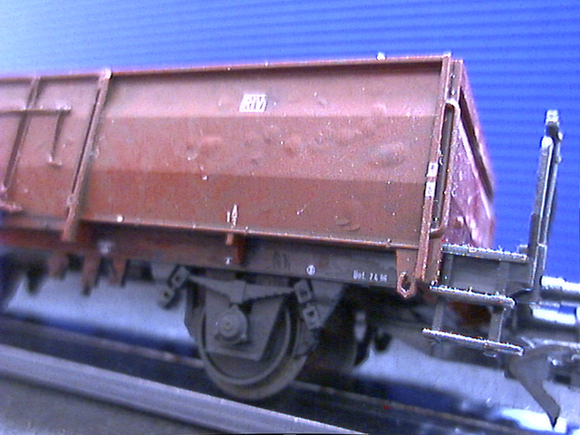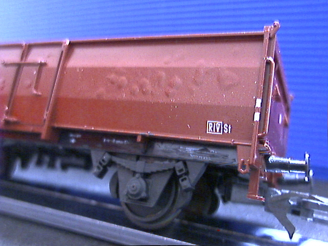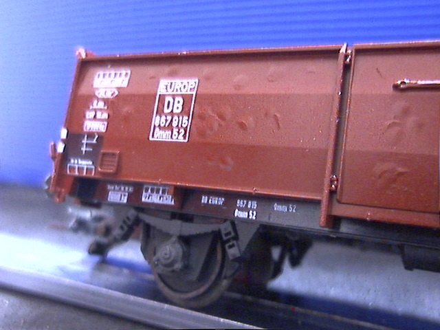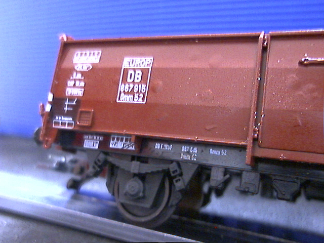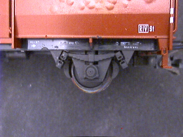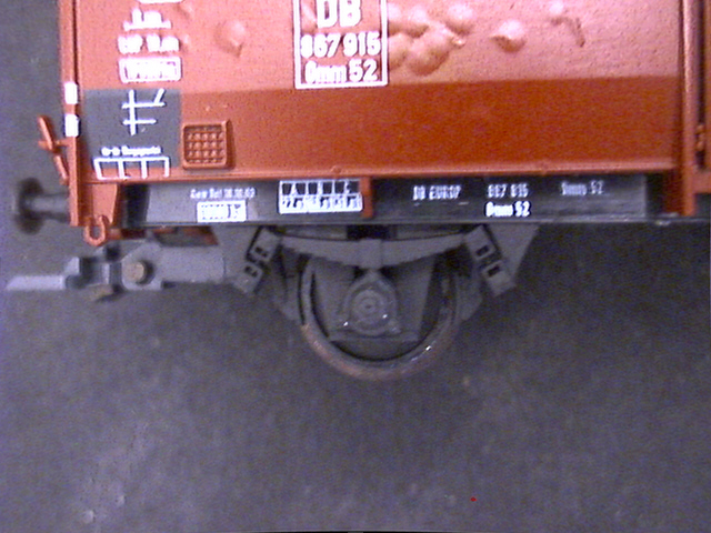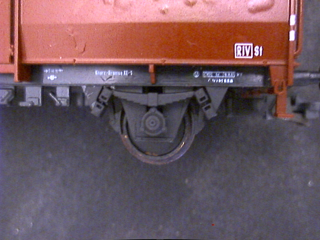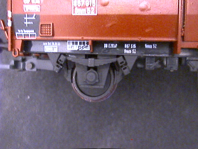 Klar: viel zu dick und zu weit außen ist er immer noch. Und sicher liegen auch die Feder und der Rahmen deutlich zu weit außen. Trotzdem: mir gefällt's, und der Wagen fällt neben anderen neueren Modellen von Wagen mit UIC-Laufwerk wie Fleischmanns Gmhs 53 oder Rocos Omm 55 nicht weiter auf.