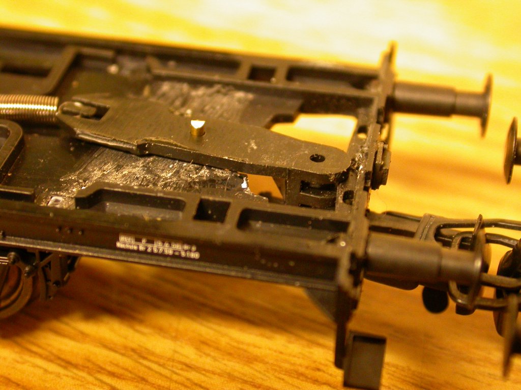 Fast fertig: Jetzt muß nur noch ein Loch in den Wagenboden, das dann den Drahtstift aufnimmt,